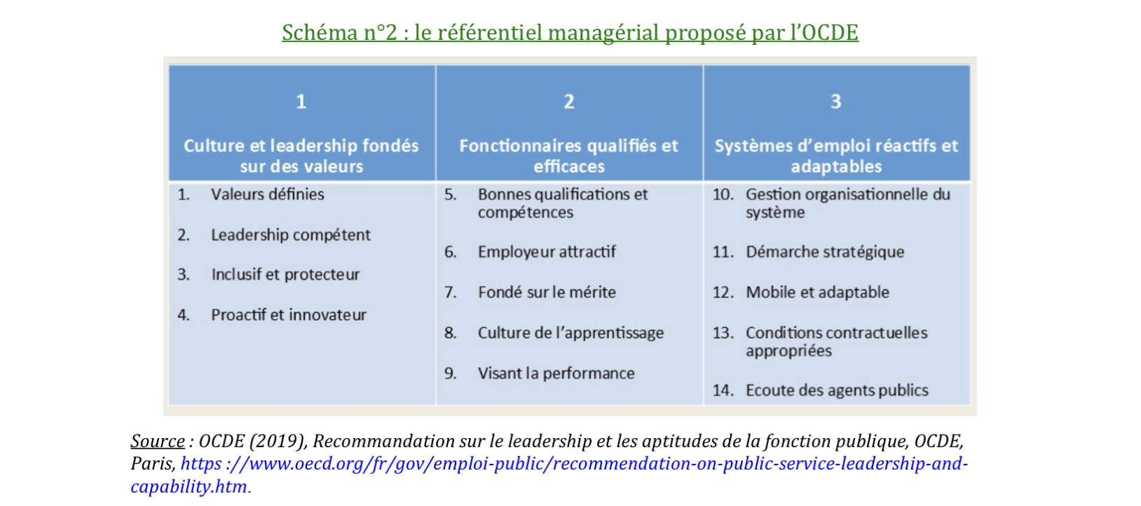Dans un format similaire, voici le référentiel managerial de l’OCDE, qui recoupe pour partie le référentiel de la mission :