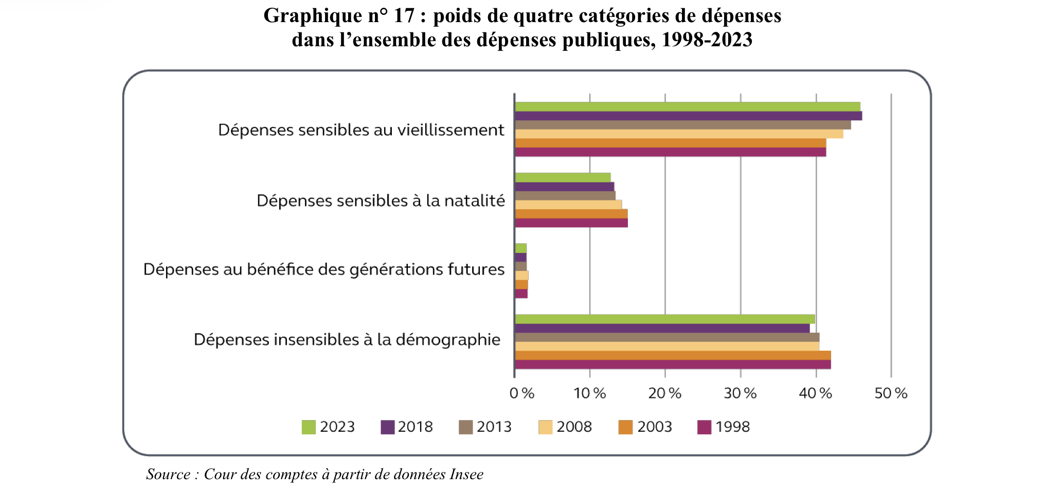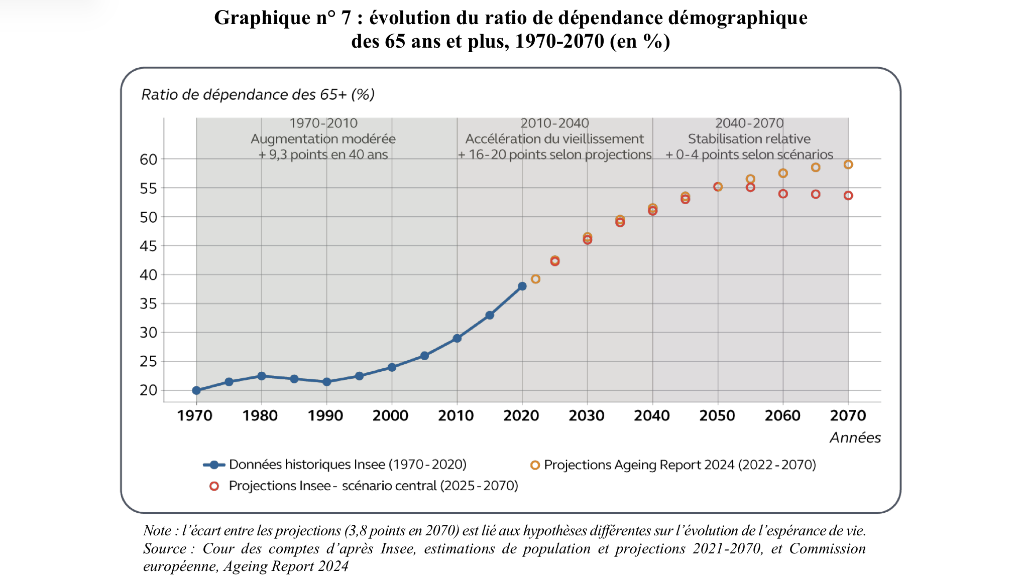 En introduction, la Cour des comptes rappelle que cet enjeu démographique est désormais prégnant dans ses analyses :